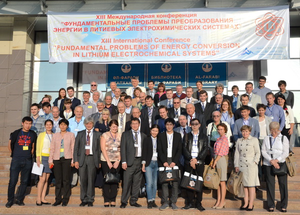 16-19 сентября 2014 г. в Казахском национальном университете им.аль-Фараби была проведена XIII Международная конференция «Фундаментальные проблемы преобразования энергии в литиевых электрохимических системах». Организаторами данного мероприятия стали Институт физической химии и электрохимии им. А.Н. Фрумкина Российской Академии Наук, Центр физико-химических методов исследования и анализа, кафедра аналитической, коллоидной химии и технологии редких элементов факультета химии и химической технологии КазНУ им.аль-Фараби при финансовой поддержке Института высоких технологий АО НАК «Казатомпром» и ТОО «Astana Solar».